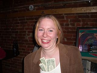 Meg, earning a buck at the Garage Bar |